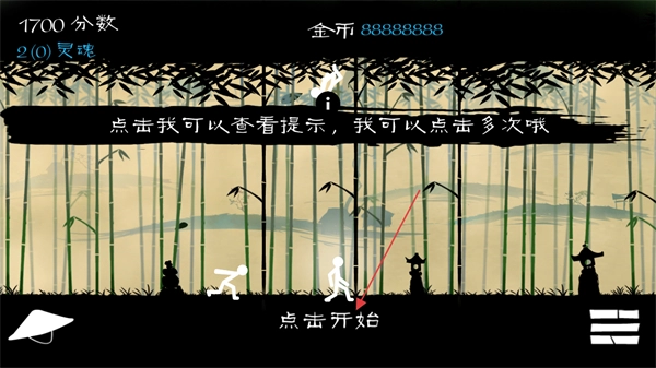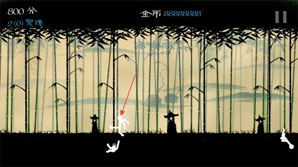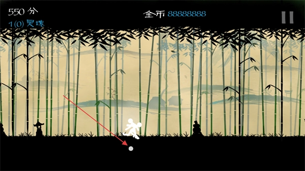 在游戏进行过程中,通过点击屏幕来控制角色向左或向右移动,与此同时要注意观察界面上分数和灵魂数值的变动情况。