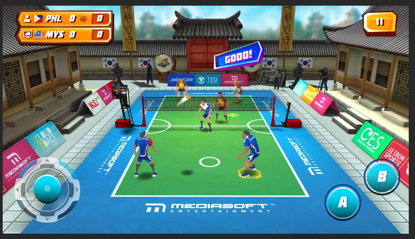 藤球最新版是一款超带感的多人对战游戏,3对3玩法模式等内容一应俱全,玩家能选择泰国、马来西亚等不同国家的队伍,每支队伍都有特色服装和专属场地,操作更是简单易上手,一个倒挂金钩就能得分,玩起来十分爽快。感兴趣的小伙伴们快来体验一下吧!