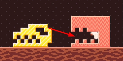 完成上方的操作后,再回到右侧区域,啃出一个“Z”字形的路径,接着借助下坠的特性,就能顺利通过最后一关了。