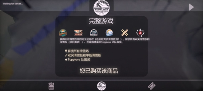 游戏是完整版的,你只需在商店解锁就能体验所有滑雪场、滑雪板和服装了。