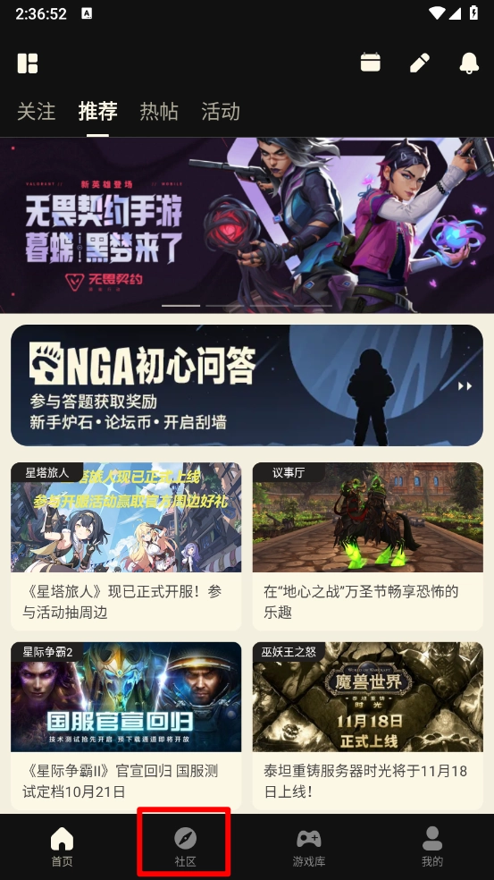 进入首页,点击底部栏目"社区"。
