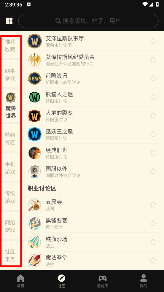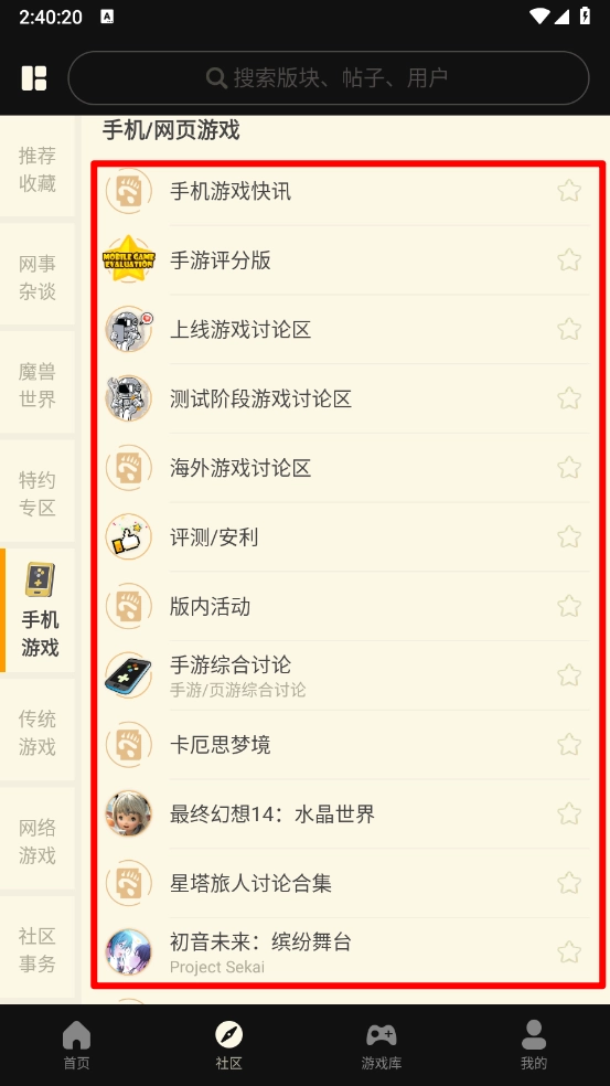 打开软件,在社区页面根据左边的分类选择对应板块。