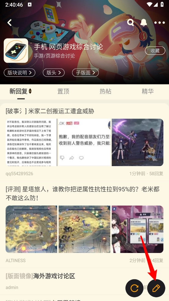 如图,进入后点击右下角"发帖"图标。