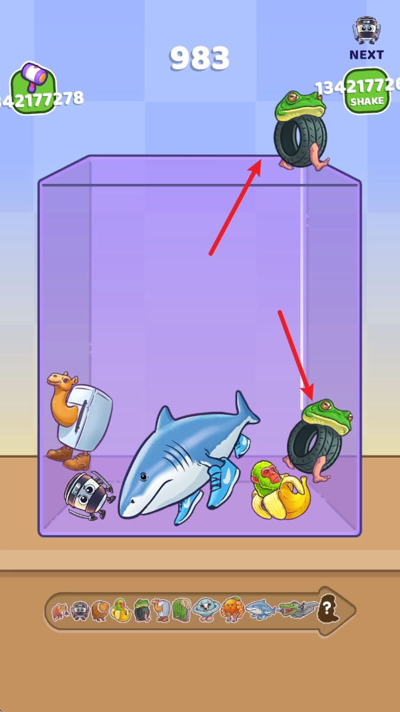 相同娃娃碰撞后即可合成,变成更高一级的娃娃。