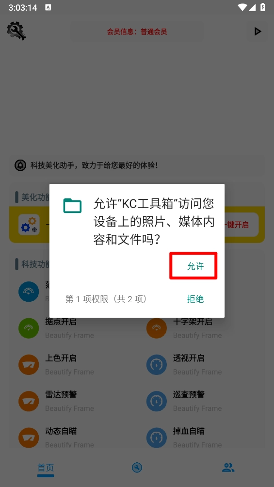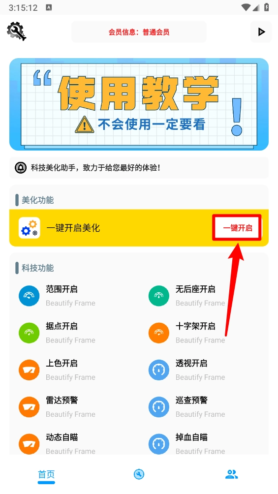 进入软件首页,在美化功能栏目点击"一键开启"。