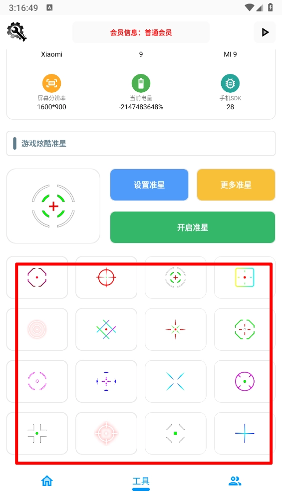 切换到“工具”板块,这里包含多种准星样式,选好后点击“开启准星”就能体验了。