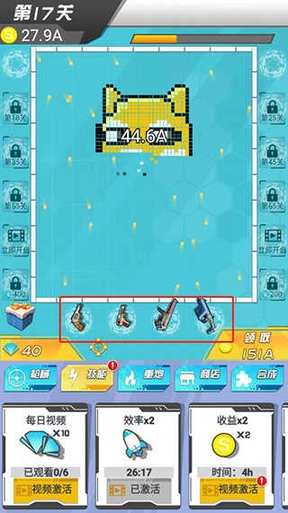 随着关卡的提升,可解锁的槽位会随之增加,同时还能解锁重炮以获得更强的射击威力。