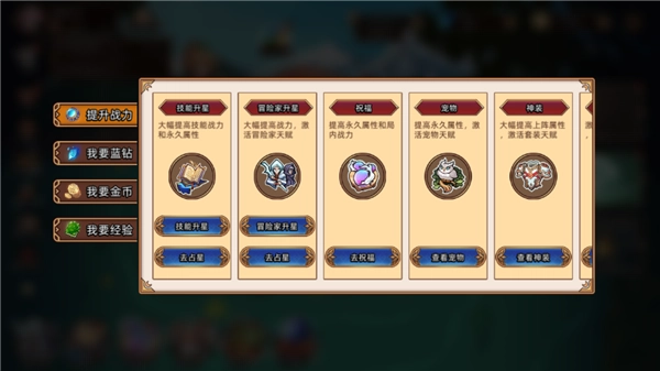 在《迷途之光》游戏前期,玩家想要击败boss确实有一定难度,必须先提升角色的战力才有胜算。接下来就为大家介绍提升战力的方法:点击界面左上角的“我要变强”按钮即可。