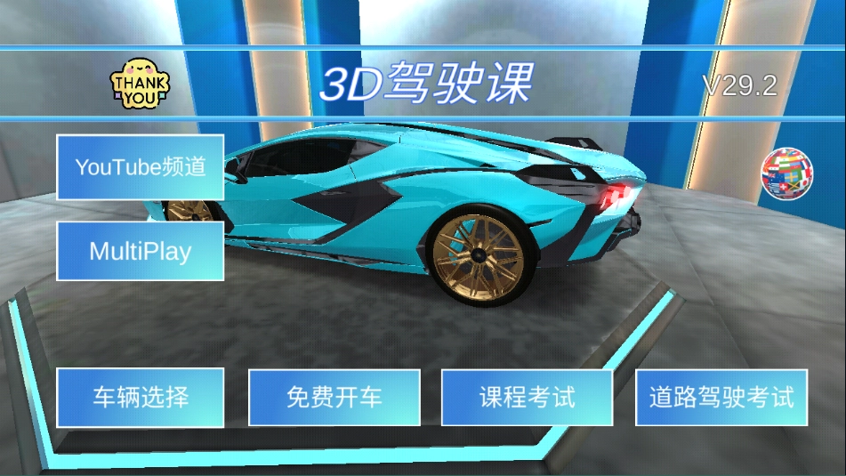 首先打开3D驾驶课的正版应用,游戏启动后,根据自己所处的地区来挑选对应的语言选项。
