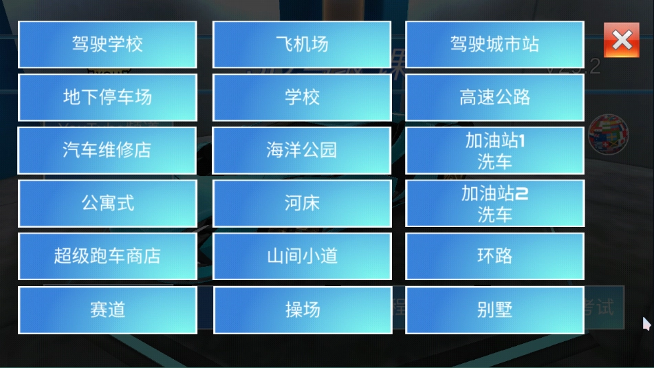 免费驾驶模式包含驾驶学校、飞机场、驾驶城市站等多个可前往的场景