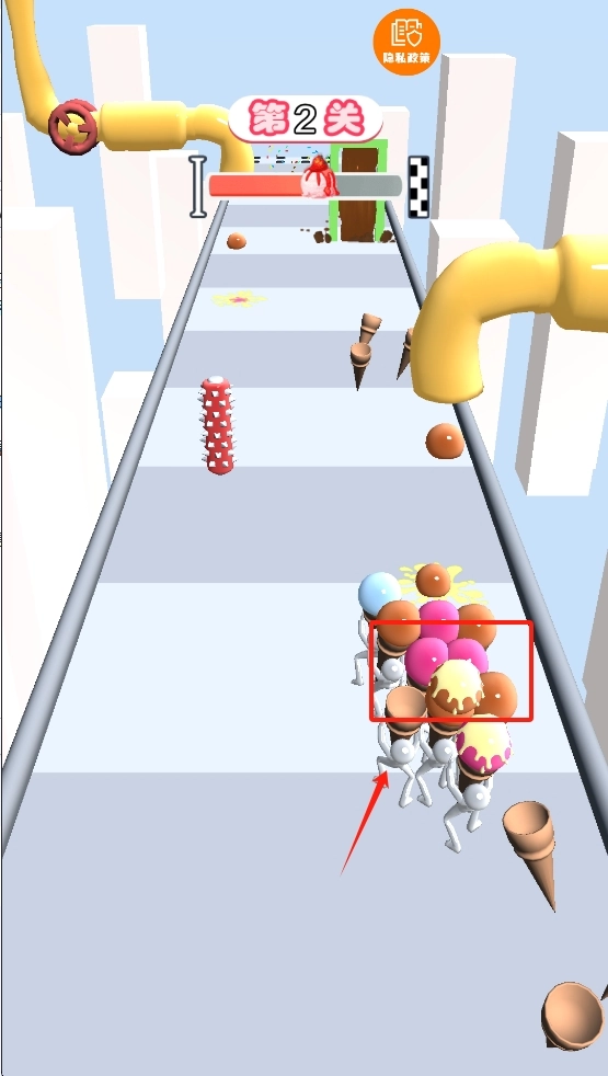 游戏设置了多样的障碍设计:在不同关卡中,玩家会遇到形态各异的障碍物,需要灵活应对,而保持甜筒的完整无损是通关的关键。