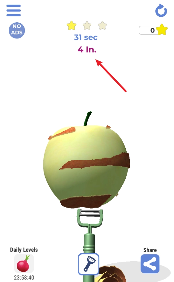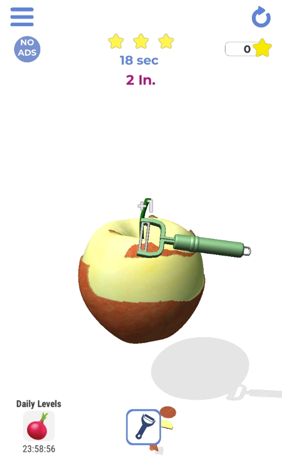 这款游戏带来解压又休闲的体验,只需用工具一键就能削净水果皮,看着自己削出的超长果皮,满满的成就感油然而生。