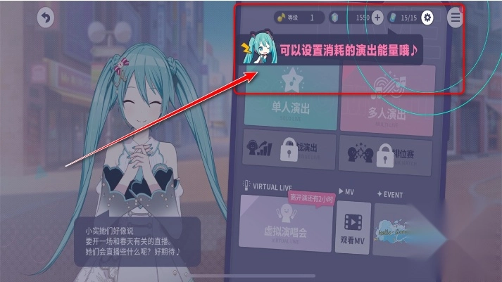 演出开始前能够设置演出小号的能量值,这和我们日常玩的游戏里的体力机制很相似。