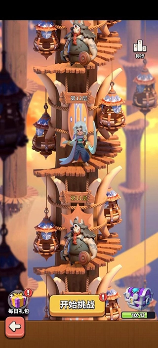 玩家若想开启“试炼之塔”副本玩法,需先通过2-10关卡,之后开启【挑战】模块,点击即可进入试炼之塔!