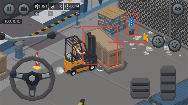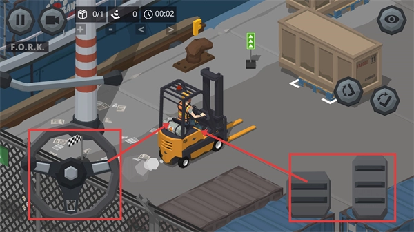4、把货物搬运到【F.O.R.K.】区域,留意时间和任务进展,完成货物交付,通过积累经验来提升等级。