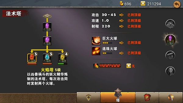 (2)法师塔中的冰塔与火焰塔,我个人格外推荐火焰塔——它的攻击范围处于中等水平,伤害数值偏高,输出表现十分稳定,且范围伤害能力相当突出;相比之下,冰塔更侧重于控制效果,针对单体目标能发挥出不错的作用。