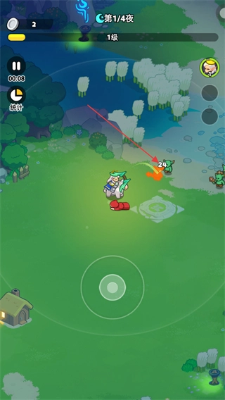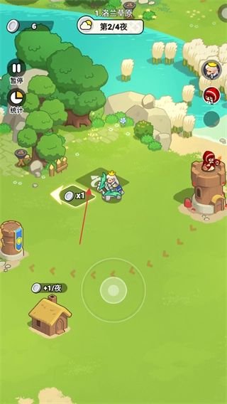2、游戏内进入黑夜时段后,会出现怪兽侵袭领地的情况,只要把怪兽圈入角色的范围圈,角色就会自动发起攻击。