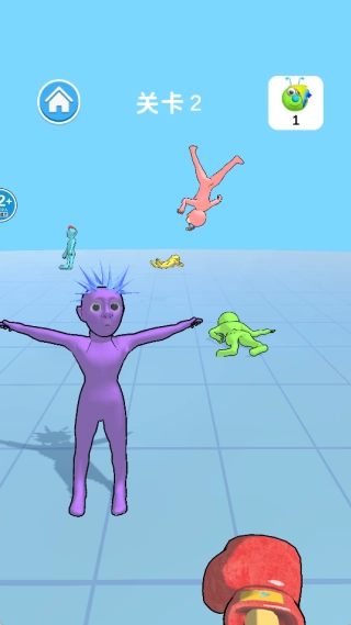 1、玩家只需疯狂点击屏幕,通过快速出拳就能直接击飞敌人,当成功击飞所有敌人后,即可领取通关奖励。