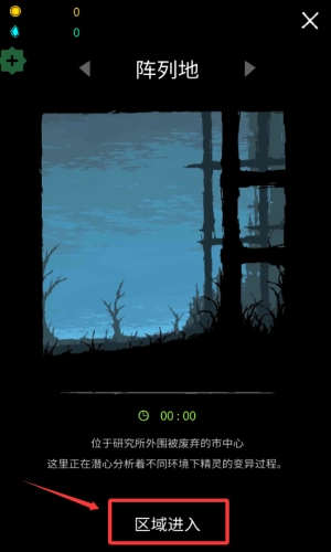 3、点击区域进入按钮,前往废弃市中心探索。
