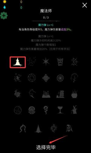 2、选择魔力弹天赋,提升角色技能伤害效果。