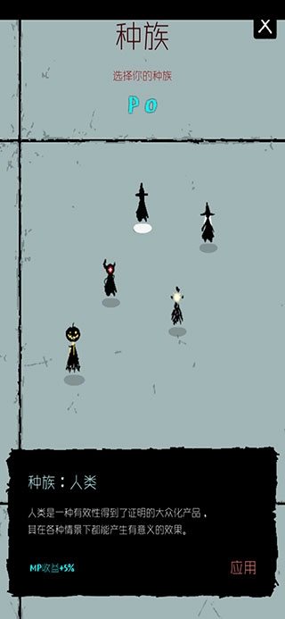 接下来要介绍的是种族设定,一共有五个,分别是人类、精灵、恶魔、灵体和南瓜灯,每个种族都有着独特的特性。