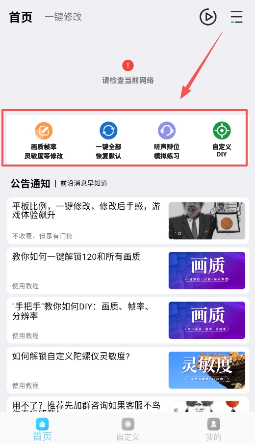 初次使用的话,建议先试试首页的“一键修改”功能,这里有预设好的方案,像一键解锁所有画质和120帧模式就很实用。