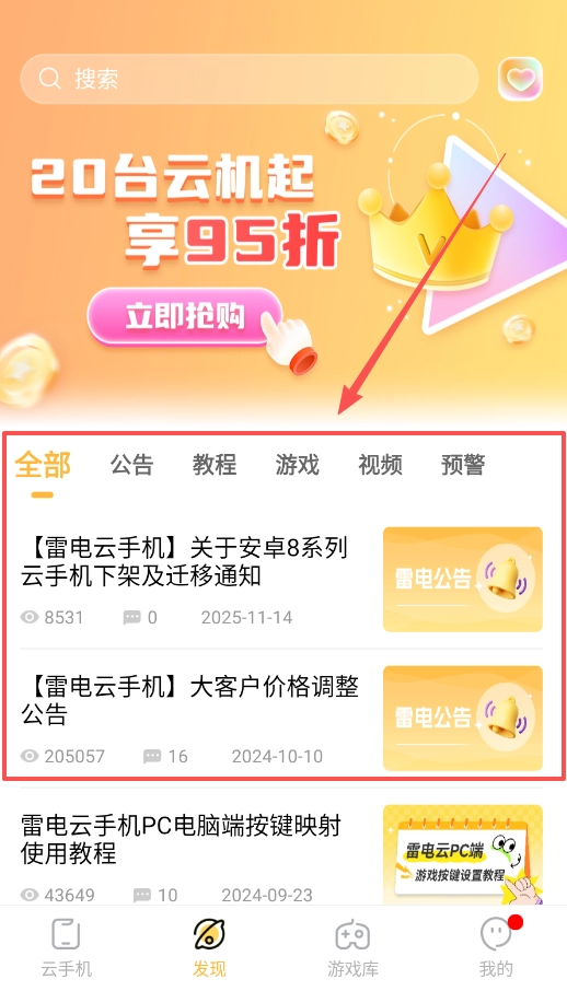 3、记得去“发现”频道看看,这里会发布重要的服务公告、大客户价格调整等信息,能让你及时掌握云服务的最新动态。