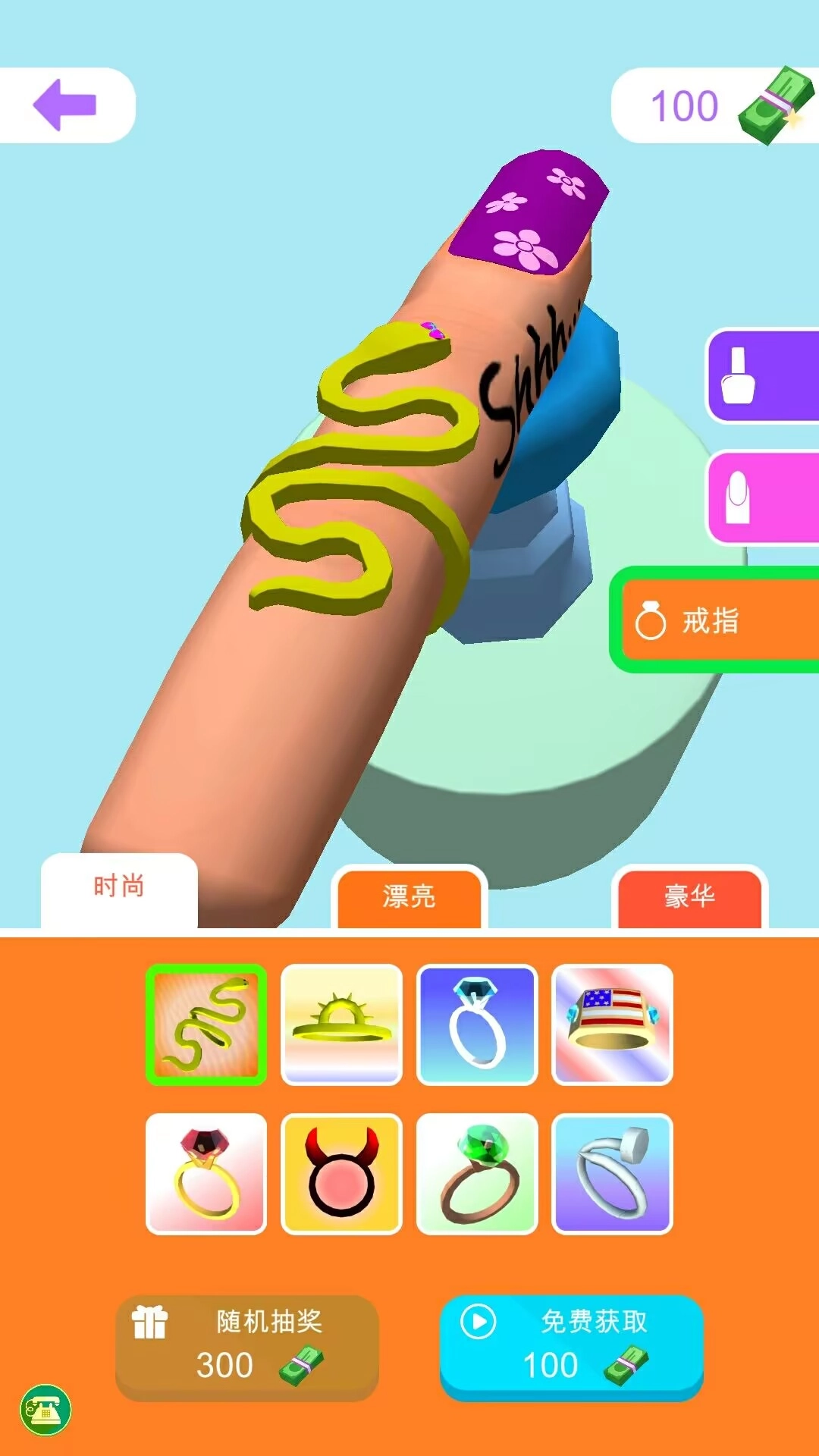 2、在《小公主爱化妆》里,还准备了各式各样的戒指款式,能够搭配你的美甲创意,快来体验一番吧。