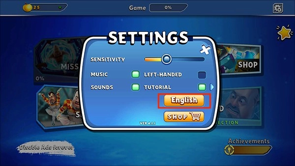 2、在“Settings”界面里点击“English”选项。