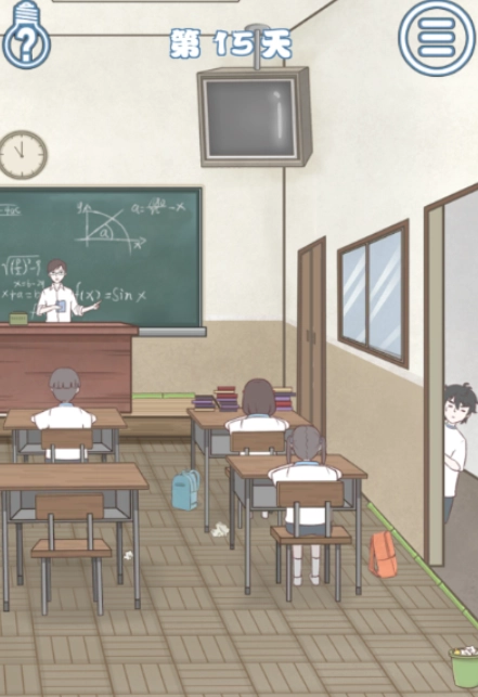 16、第16关: 撕掉日历,暗示回家带伞以防下雨(属于别样的迟到情况)。