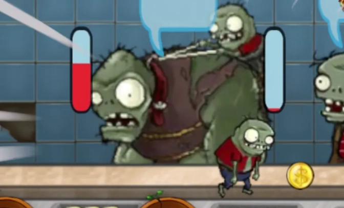 巨人僵尸能够投掷小鬼僵尸,还会把柜台里的钱偷走,它的作用和原游戏里的小偷角色差不多。