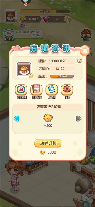 4、建议优先提升店铺等级,等级越高可解锁的游戏内容就越多。