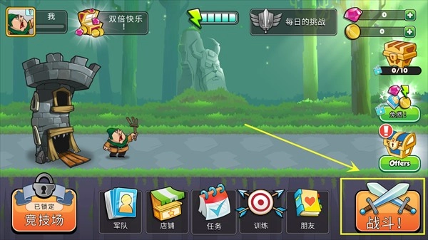 进入游戏后,点击右下角的战斗按钮,就能进入对战模式了。
