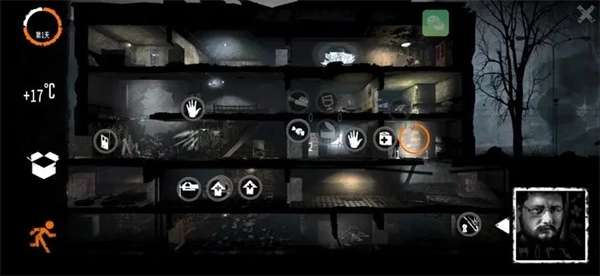 房子已经搜寻完了(右下角那个大厨正赶过去),接下来就能跳过这个夜晚了。不过在这之前,得先检查下家里缺哪些材料——药品和食物要是不需要就别拿,容易招贼,除非你家底特别厚。