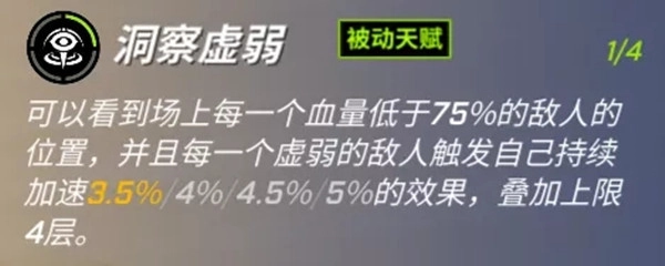 二、被动技能“洞察虚弱”可显示残血逃生者的视野,并依据残血逃生人数为自身提供加速效果。若残血逃生者侥幸从追捕者手中逃脱,追捕者能借助该被动技能加速追击并击倒逃生者。