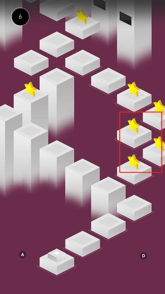 2、我们要留意带有黄星星的台阶,规划好跳跃的路线,收集星星,另外还要注意台阶的高度差和间距,稳步地移动。
