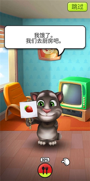 1、要是汤姆猫饿了,那我们就得点击下方的餐具图标进入厨房。