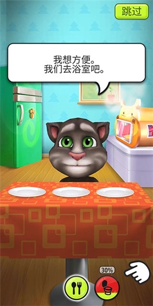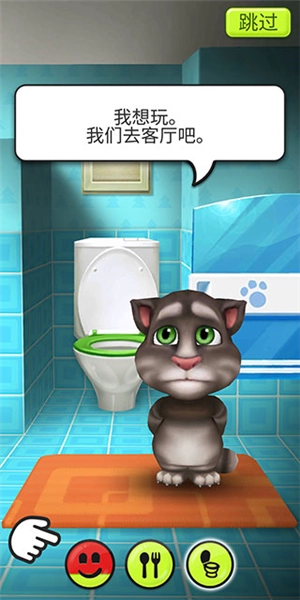 3、要是汤姆猫有了便意,我们就得点击下方的马桶图标,带它去浴室。