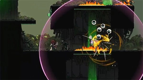 7、每个大关卡包含十个小关卡,地图是随机生成的。要留意环境里的陷阱和能利用的物品,像部分平台可以通过跳跃来躲避敌人的攻击。