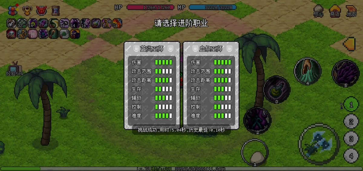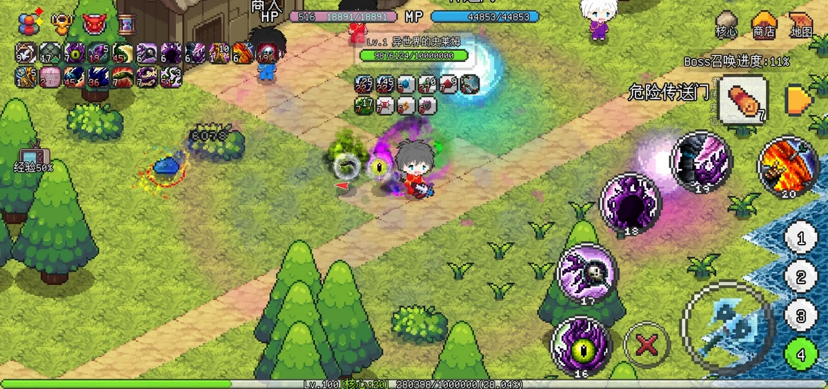 1级时我的命中是344,穿戴完毕装备后传送至沙滩,接着查看经验广告与命中广告,随后沿着右侧一路打怪前进,抵达贝壳所在位置时等级差不多就到20级了。之后向上行进,去挑战50级以上的怪物,升到30级左右时把技能点好、属性点加好,再制作一件30级的法杖,就可以去攻打66级BOSS和79级BOSS了——这两个BOSS分别位于58级蓝怪的左边和上方。完成这些后等级能升到42级,整个过程大概花费10分钟。