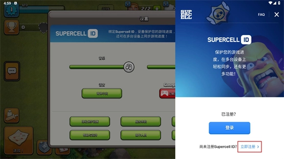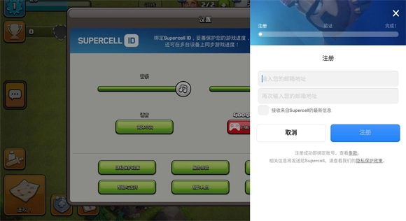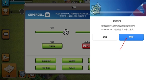 首先要完成新人教程,接着点击右下角的设置图标,待设置界面弹出后,点击其中supercell ID的“已断开”选项。