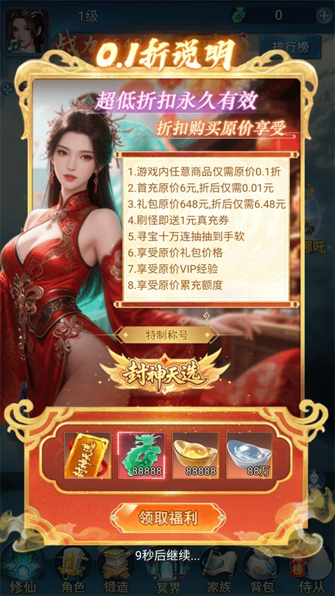 FSobcidhutd2qb:仙族侍从资质丹*1,仙族培养丹*10,仙玉*888,元宝*88888