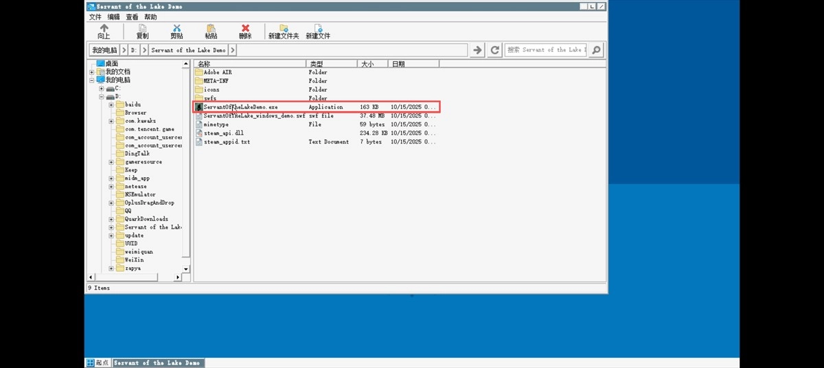 6、找到ServantOfTheLakeDemo.exe文件并双击它