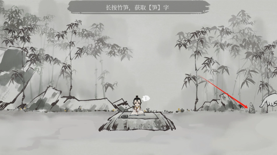 2、然后点击右侧的竹笋,获取“笋”字,按照提示把“笋”字从中间拆分。