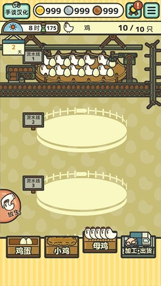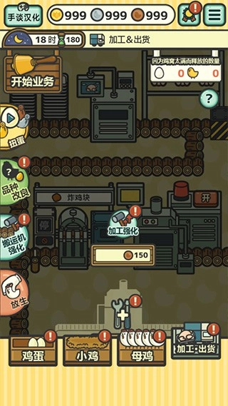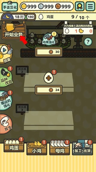 2、到了夜间,还能对流水线进行强化或新建,也可以增加商品、改良小鸡的品种。