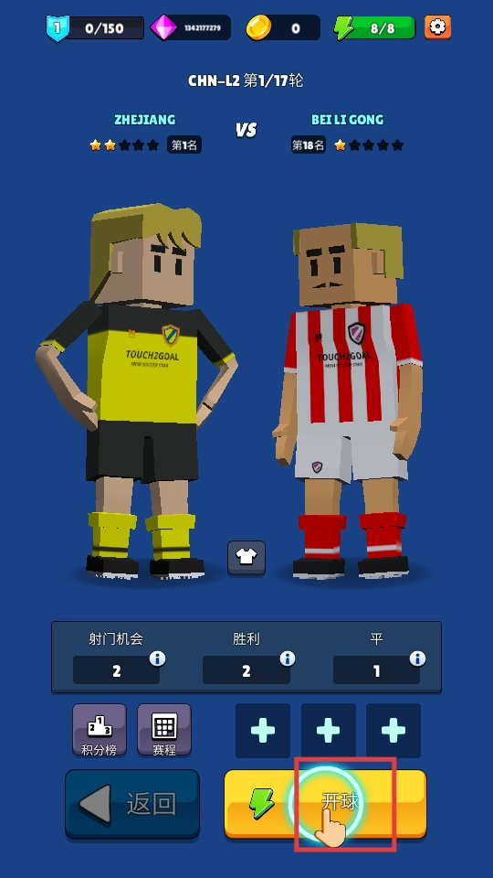 1、点击【开球】按钮,即可进入足球赛事场景,开启这场充满挑战的比赛,全力拼搏以争取最终的胜利。