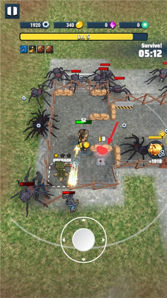 2、消灭一波又一波的敌人,不断扩建自己的阵地,并且在阵地上建造各种设施,帮助你一起消灭敌人。