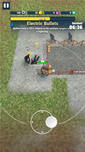 1、游戏中拖动虚拟摇杆即可移动,敌人靠近范围后即可射击。