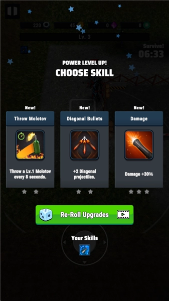 1、尽可能的坚持下来,一旦失败就是重新开始!通过不断的消灭敌人来提升等级,学习更多的技能。