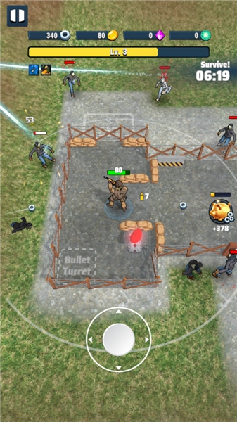最终幸存者是一个一个有趣的肉鸽随机与割草爽感的策略塔防,在这个修改版中,我们可以使用无限的资源,免内购就获得各种商品和道具。玩家化身末日最后幸存者,在绝境中建立阵地求生。操控虚拟摇杆移动,敌人进入射程便开火迎敌,击败它们攒经验升级,每级从三个随机技能里择一强化战力。收集齿轮扩建阵地,搭建防御设施,场地定时产出爱心回血,每波结束后回主界面修整再战。游戏有双武器与无人机协同作战,随机技能组合催生多样战斗流派,让你在僵尸潮中体验割草快感。